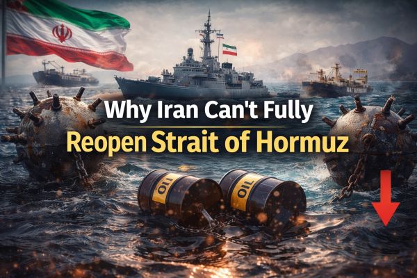 जानिए क्यों Iran Strait of Hormuz को पूरी तरह reopen नहीं कर पा रहा है और इसका global oil trade पर क्या असर पड़ रहा है।